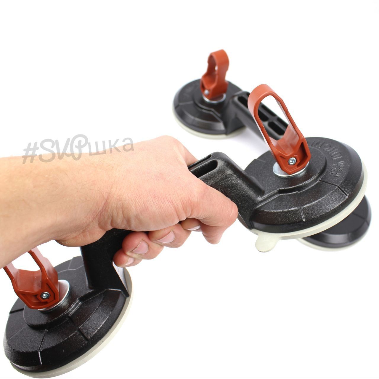 Призначена для перенесення керамічних плит. Має м'яку гуму, що гарантує відмінне зчеплення навіть зі структурною плиткою. Пристрій має дві присоски, з'єднані рукояттю, виконані з литого алюмінію. Розрядження в них (вакуум) створюється і знімається одним натисканням пластикових важелів. Структура подвійної присоски виготовляється із міцного алюмінію.