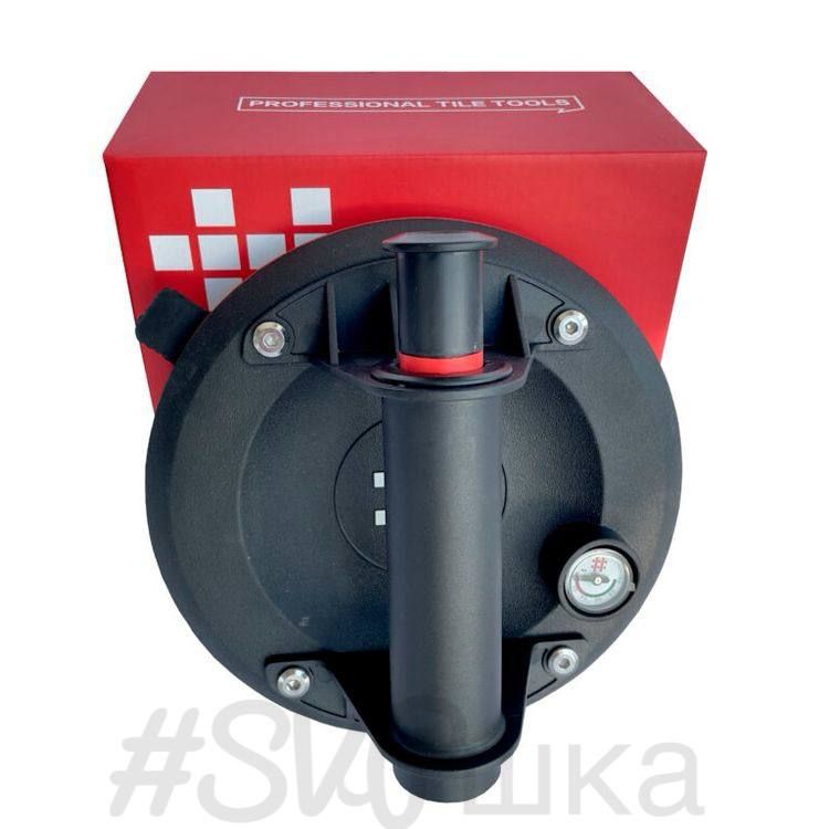 Популярна та надійна присоска від виробника SHIJING. Призначена для перенесення керамічних плит. Має м'яку гуму, що гарантує відмінне зчеплення навіть зі структурною плиткою. Також підходить для підйому будь-яких пористих матеріалів, таких як мармур, граніт, скло тощо. Вакуумметр дозволяє постійно контролювати стан захоплення присоски, вказуючи майстру, коли необхідно відновити вакуум. У комплект обслуговування входять запасні прокладки, які у разі поломки дозволяє продовжити використовувати присоску.